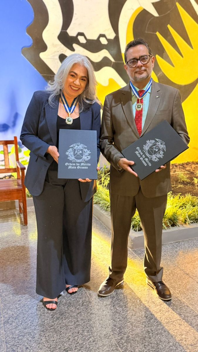 Em reconhecimento oficial aos relevantes serviços prestados ao desenvolvimento do Estado, a reitora da Universidade do Estado de Mato Grosso (Unemat), Vera Maquêa, e o ex-reitor, Rodrigo Bruno Zanin, foram condecorados com a Comenda da Ordem do Mérito Mato Grosso – Grau Comendador.